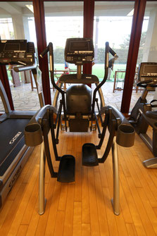 上半身も積極的に動かすマシン。バーを持ち、手と足と一緒に動かします。全身を刺激し、ヒップアップにも効果あります。